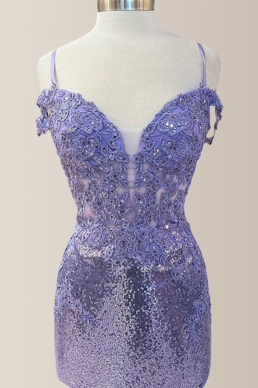 This dress is the perfect choice for you to stand out at the homecoming dance. Made of premium sequined fabric and decorated with appliques, the tight design fits perfectly and highlights your curves. The thin straps add a touch of sexiness and elegance, while the short cut ensures freedom of movement while showing off your legs.