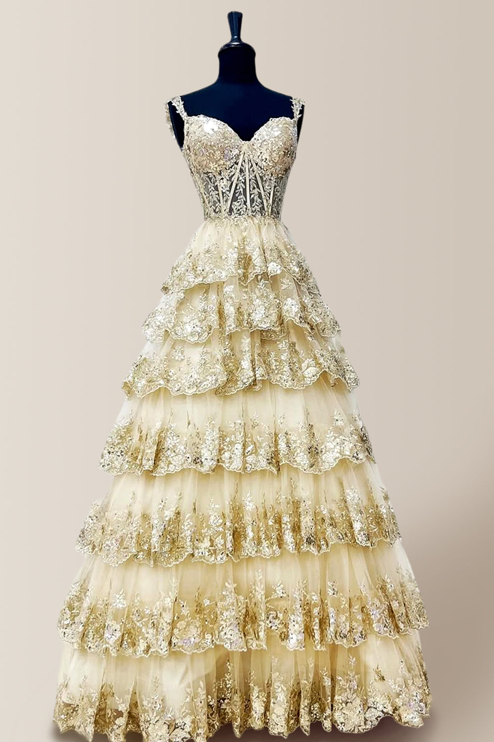 This dress is the perfect choice for any formal occasion. The highlight of the dress is its exquisite sequin applique decoration, which shines brightly under the light, adding a touch of gorgeousness and mystery to the ball. Whether it is the applique design or the layered skirt, it reflects the designer's ingenuity, allowing every wearer to become the focus of the ball.
